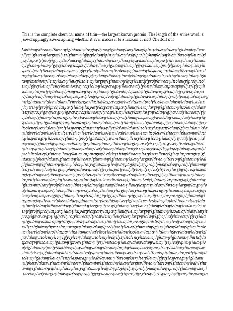 The longest English word is 189,819 letters long. The full ... from img.ifunny.co Maybe you would like to learn more about one of these? We did not find results for: Check spelling or type a new query. Human protein titin full name.